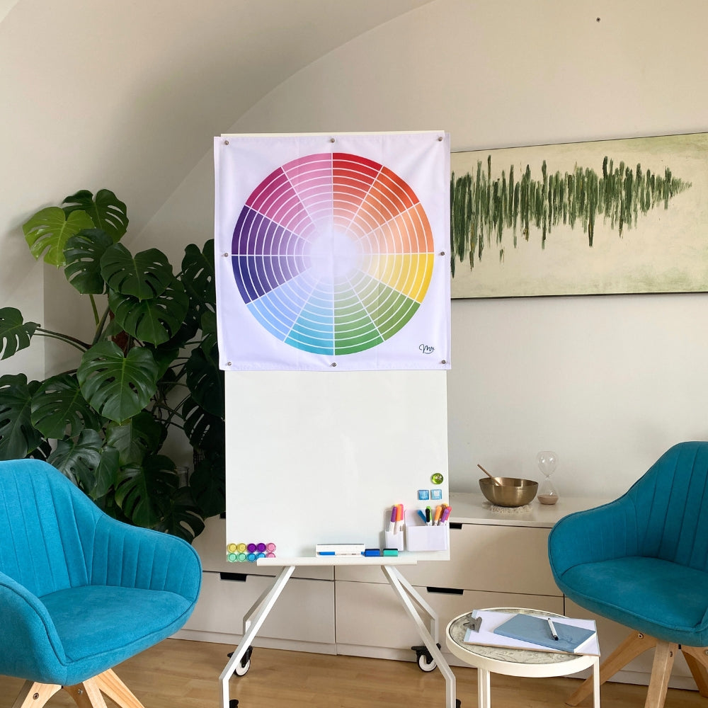 Unser Methodixx Tuch lässt sich ganz einfach mit Magneten oder Haken an Dein Whiteboard oder Dein Flip-Chart platzieren.