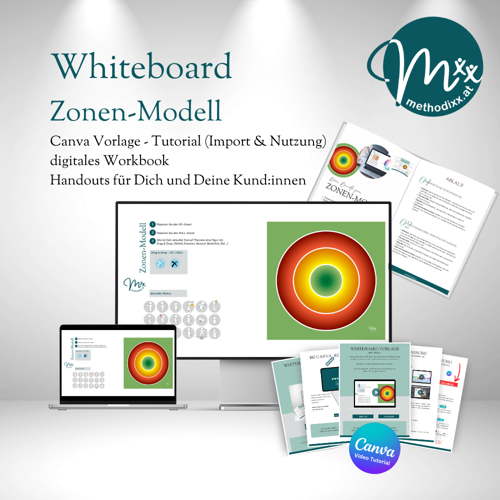 Whiteboard - Canva Vorlage inkl. Video Tutorial - "Zonen-Modell" für Online-Beratung/Coaching